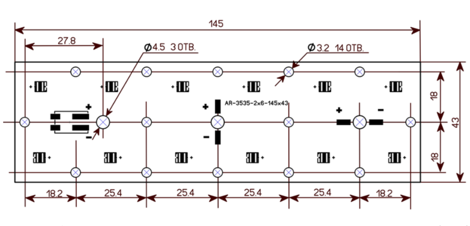 Ключевые параметры компонента ALC145.43.12-0-TGB-C7RC2-10-10-S (1x12): TGB Размер: 145 x 43 мм; P ном.: 24.8 Вт; Число СИД: 12 шт; CCT тип.: 5000 K; CRI,Ra: 70; Эффективность : 178 лм/Вт; I ном.: 700 мА; U ном.: 35.4 В.