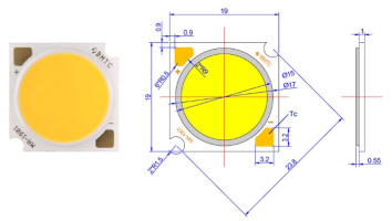 Светодиод белый 19x19 COB LC019D3 4000K CRI80 SAL