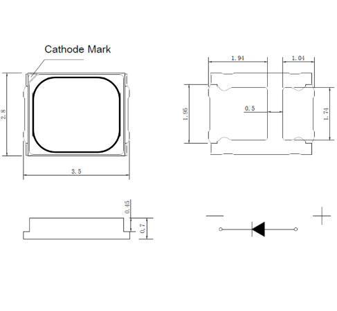 | ShineOn | 2835A03-460B10-U1S-B24 ShineOn, Светодиоды монохромные, Тип: 2835A03; Типоразмер: 2835; Тип линзы: Прозрачная; Цвет излучения: Синий; λ d/p: 458 нм; Яркость: 20 Лм; U т.п.: 3.2 В | В наличии | 2.28 руб./шт. |
