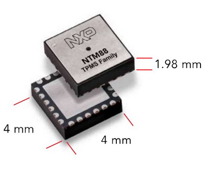 NTM88H155T1 NXP, Датчики контроля давления в шинах, Диапазон измерения давления: 90~930 кПа; Диапазон рабочих температур: -40°C~125°C; Допуск: 5 кПа; U вх.мин.: 1.8 В; U вх.макс.: 3.6 В; U пит.: 3,3 В; Интерфейс (Тип выхода): RF/Wireless 315/434 МГц; Тип порта: нет