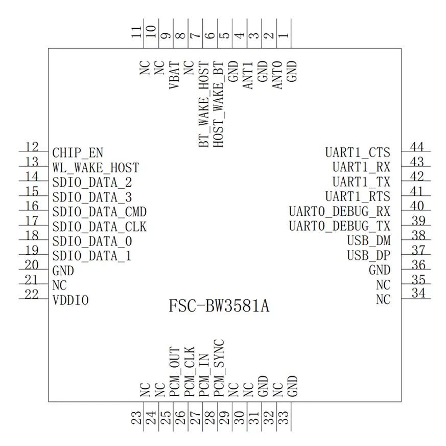 Схема расположения выводов модуля FSC-BW3581A (цоколёвка)